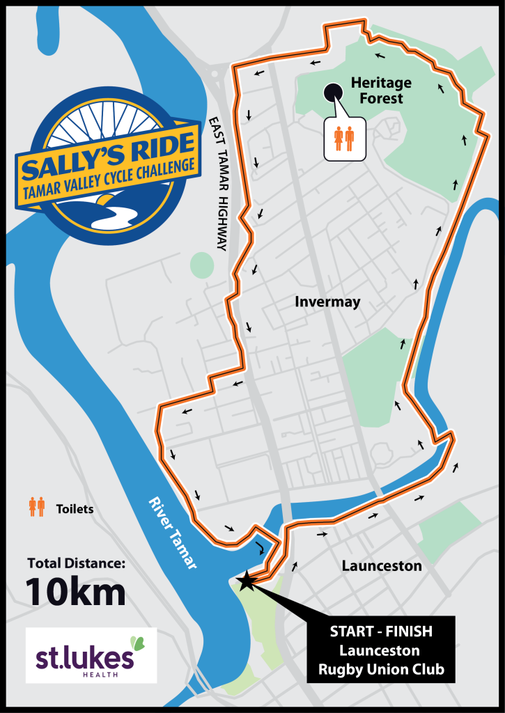 The ride starts and finishes at the Launceston Rugby Union Club (Home Point Parade). The course mainly follows shared pathways and quiet residential streets, keeping most of the ride away from busy roads for a relaxed and family-friendly experience.
